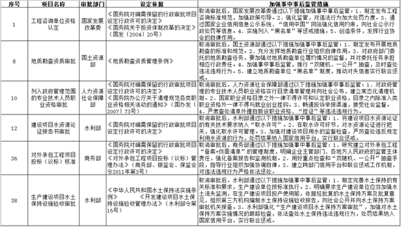 以上公布取消的行政许可事项,其中市场已具备自我调节能力的事项改革后,相关部门的管理职能要重点转向制定行业标准规范,加强事中事后监管,惩处违法违规行为,维护市场秩序;由同一部门对相同内容进行重复审批的事项改革后,相关部门在削减重复审批、合并办事环节的同时,要进一步强化保留审批事项的准入把关作用,发挥认证管理的积极作用,落实监管责任,防止出现监管盲区;由不同部门多道审批改为负主要责任的部门一道审批的事项改革后,不再实施审批的部门负责制定有关行业标准规范,负责审批的部门按标准规范审核把关,遇到特殊疑难问题通过内部征求意见解决,部门间要优化工作流程,压缩审批时限,便利企业办事。改革涉及的部门要制定完善事中事后监管细则,自本决定发布之日起20个工作日内将适宜公开的向社会公布并加强宣传、确保落实。各地区、各部门要抓紧做好衔接工作,认真落实事中事后监管责任,坚决维护公平公正的市场秩序。